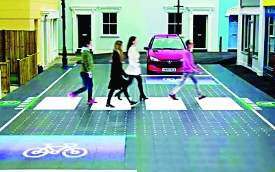 前不久,英国研发出一条高科技智能人行横道,目前正在伦敦某一公路路段进行测试。这条智能人行横道相当于在公路上铺上了长达22米的LED面板,面板能防水还可感知压力,能识别是否有行人或车辆在通行,红绿灯和斑马线的功能都归纳到这块面板上了。