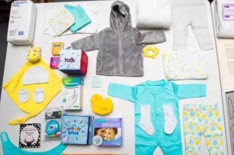 盒子里只有毯子和毛巾是由欧洲制造的,产妇卫生巾来自英国诺丁汉郡,而一本精装书由伦敦出版。