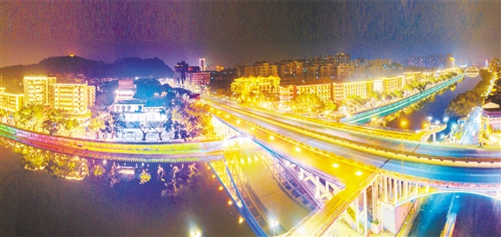 夜晚的城央绿廊美丽璀璨。 江门日报记者 郭永乐 摄
