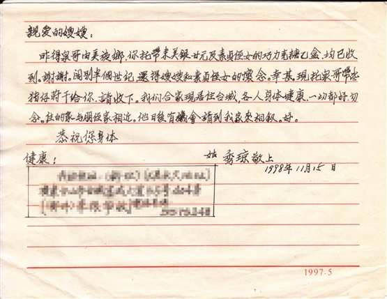 李柏达的母亲给海外亲人的回信。张华炽摄