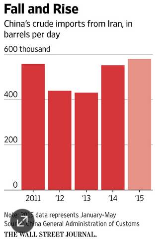 就在本周二(当地时间7月14日)伊核问题谈判各方达成协议之前,中国同伊朗的石油贸易规模已经开始回升。今年前五个月,中国平均每天从伊朗进口石油的数量较以往已经有所增加。